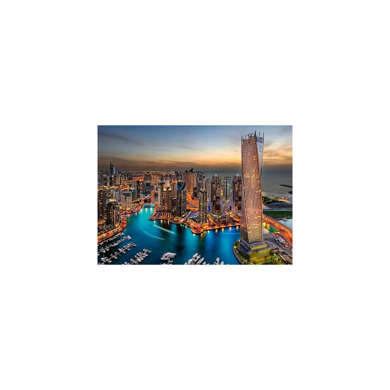The Ravensburger Puzzle Dubai Marina depicts a detailed picture of the iconic Dubai Marina. Its dimensions are 360 x 26 x 50 mm and it belongs to the category of miscellaneous toys.