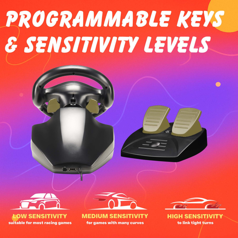 Steering wheel for arcade games and discover the first sensations of racing simulation.