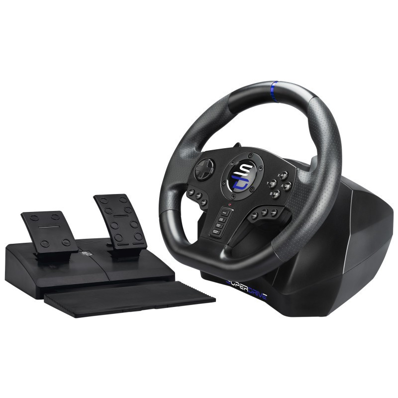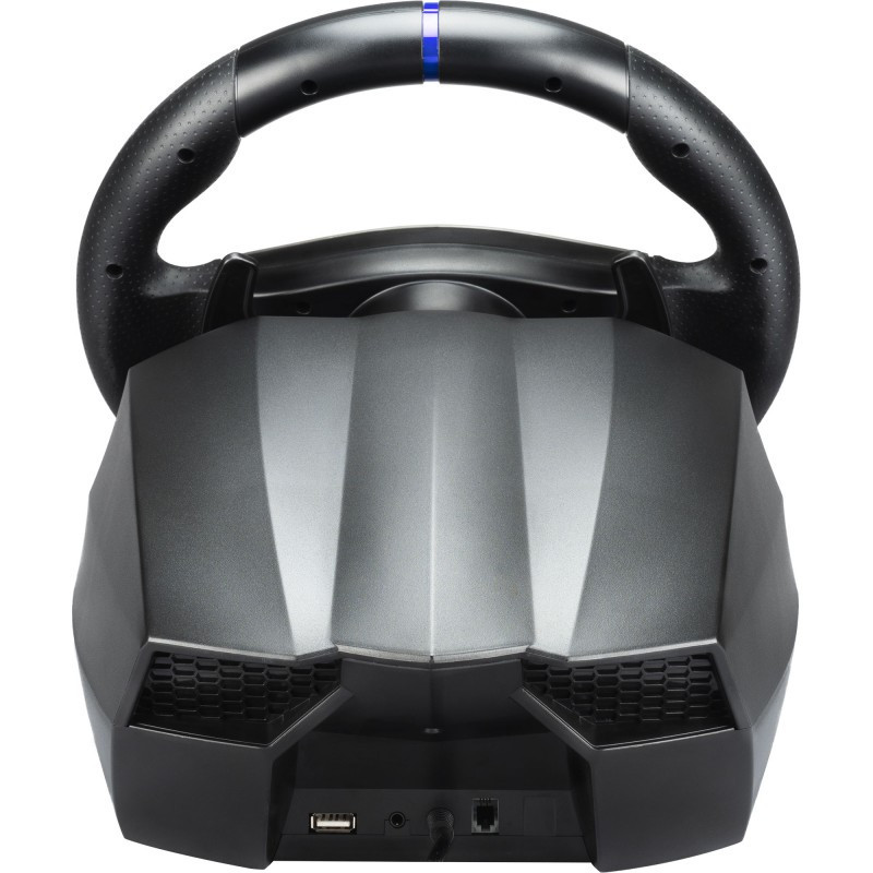 A radical steering wheel with a sporty, sleek design that provides an ultra-realistic, tenfold driving experience.