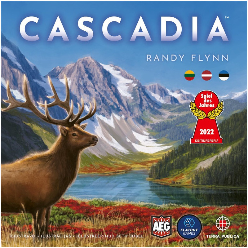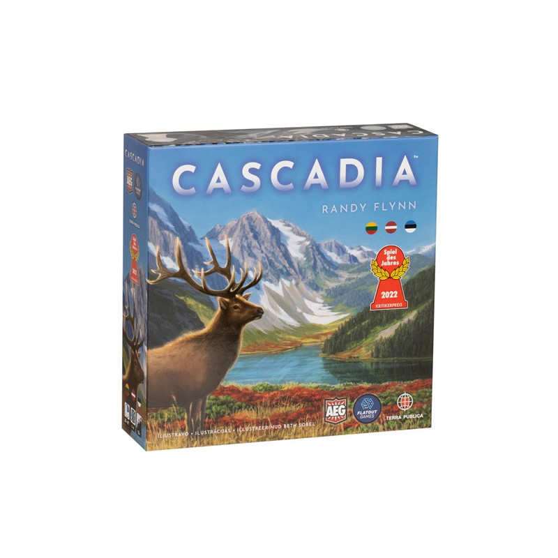 | Papildoma informacija | Cascadia yra į dėlionę panašus lentelių dėliojimo žaidimas su buveinėmis ir laukine gamta iš Šiaurės Vakarų Amerikos Ramiojo Vandenyno pakrantės.Žaidime, jūs paeiliui statysite savo vietovę ir apgyvendinsite ja su laukine gamta. Jūs pradėsite su trimis šešiakampėmis buveinės lentelėmis (žaidime yra penki tipai tokių lentelių) ir ėjimo metu pasirenkate naują lentelę, kuri susijusi su atitinkamu žetonu, tada dedate ją šalia jau egzistuojančių ir tada laukinės gamtos žetoną dedate ant atitinkamos lentelės |
