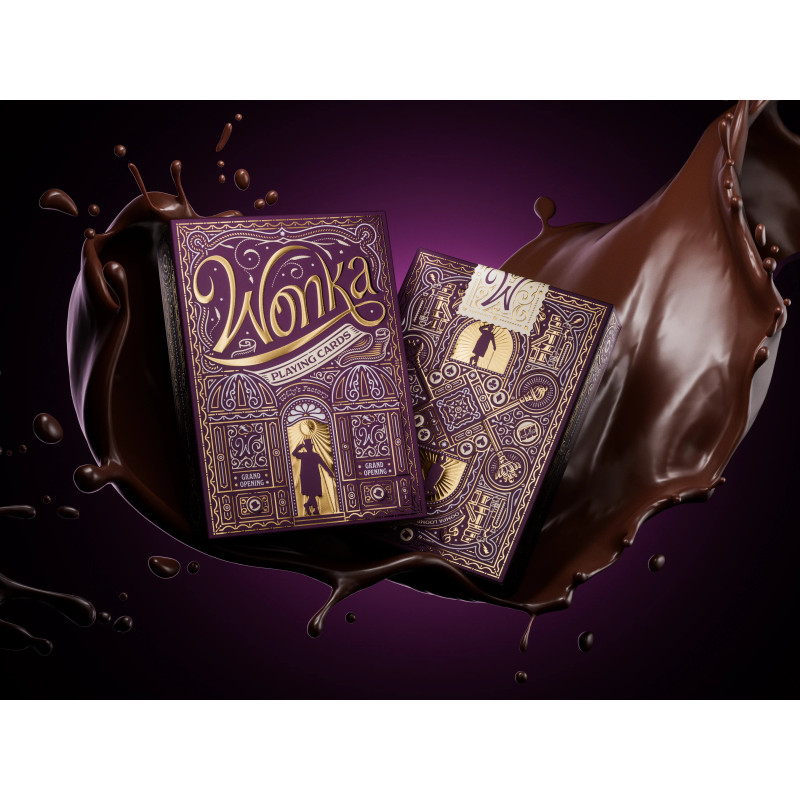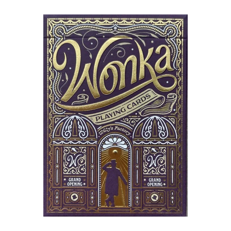 Unbox your golden ticket! Premium playing cards made by 'Theory11'. Made in America. Magician, inventor and chocolatier extraordinaire! Indulge your imagination with 'Willy Wonka' - featuring detailed illustrations created especially for you, depicting your new favorite movie characters, packaged in a luxurious matte purple and gold foil box.