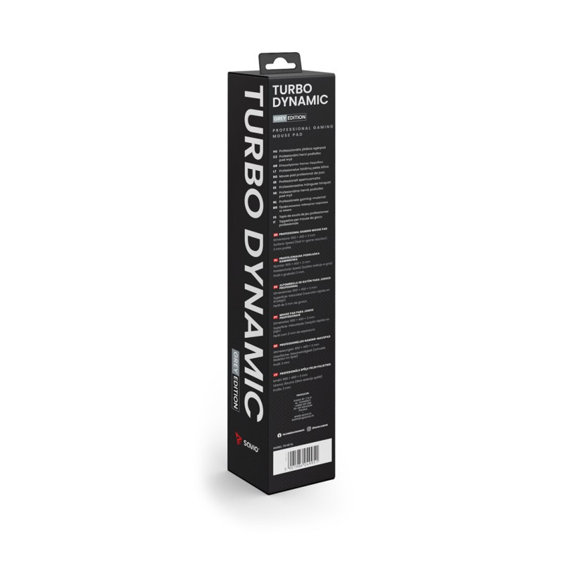 The Savio Turbo Dynamic XL gaming mouse pad has a large surface measuring 900mm x 400mm and 3mm thick. It is made of fabric with sewn edges, a non-slip base and is wear-resistant.