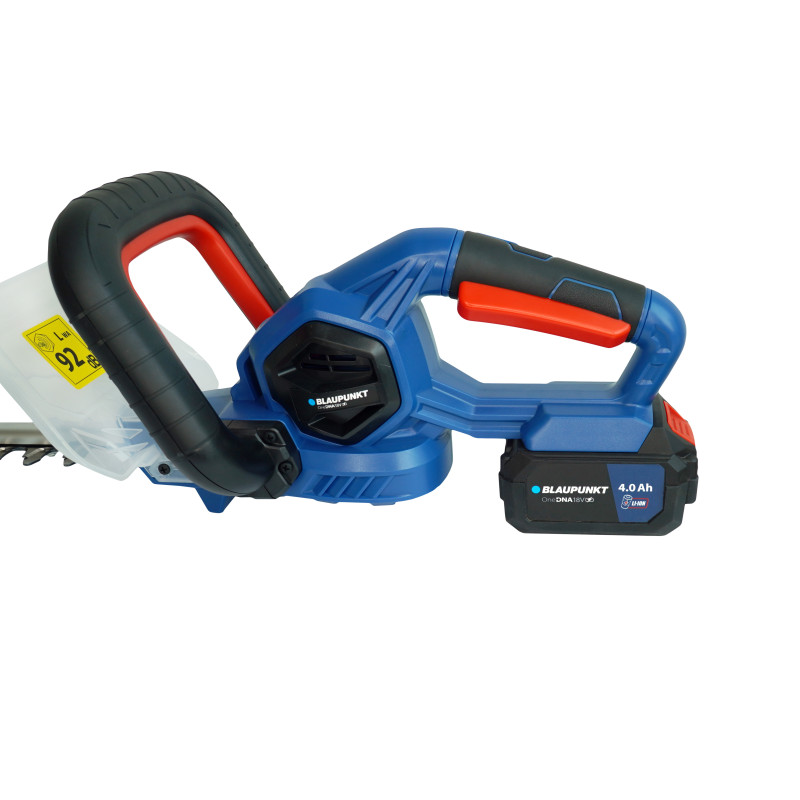 With a 520mm working length and 20mm tooth spacing, it's ideal for shaping hedges. An electronic brake enhances safety, stopping the blade instantly when the trigger is released. Powered by a BLAUPUNKT OneDNA 18V Li-Ion battery (2.0 Ah or 4.0 Ah recommended, not included), the CT6010 makes trimming faster and easier.