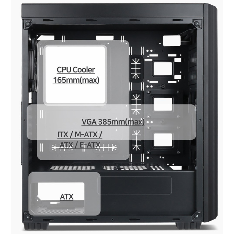 | Supported motherboard form factors | E-ATX, ITX, ATX, micro ATX |