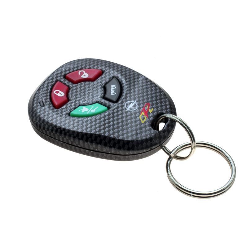 This "carbon", very durable, four-button remote control manufactured by Audiovox successfully replaces remote controls in two- and three-button housings: