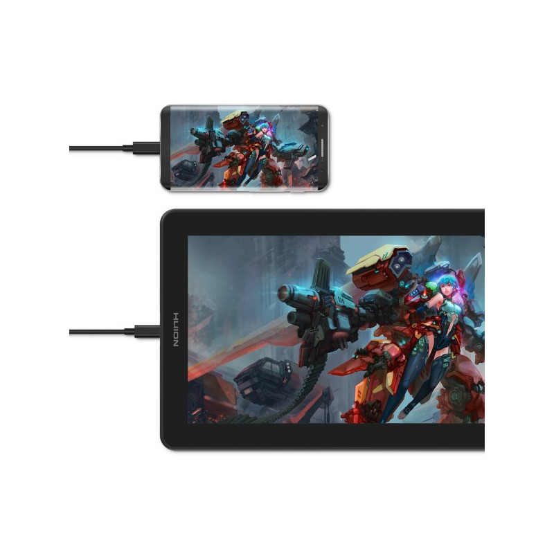 The HUION Kamvas 13 graphics tablet features a 13.3-inch Full HD IPS display with 1920 x 1080 pixel resolution and 120% color gamut. It offers 8192 pressure levels, a 293.76 x 165.24 mm working area, and 8 programmable buttons for more convenient use.