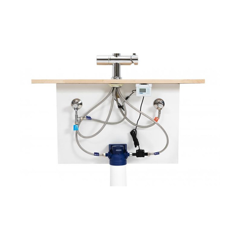 The BWT AQA monitor is installed directly under the sink and displays the filter capacity, depending on the water hardness and operating time. The filter replacement indicator is connected to the filter via a flow sensor. As soon as the filter capacity is used up, an acoustic signal sounds. The filter cartridge can then be replaced in just a few simple steps.