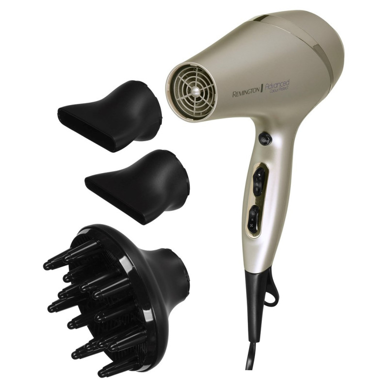 The REMINGTON Colour Protect hairdryer has a powerful 2300W AC motor and an advanced temperature sensor to prevent overheating. It has 3 heat settings, 2 speed options and a cool shot function to allow for a variety of hair styles.