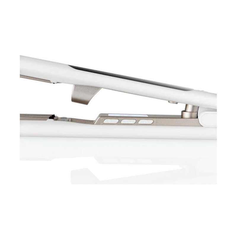 Hair straightener with 25 x 90.5 mm ceramic-tourmalineplates, as well as a steam function (a filled 7.5 ml water tank will allow the steam function to be used for up to 20 minutes). Using this function, you can straighten your hair effectively and quickly.