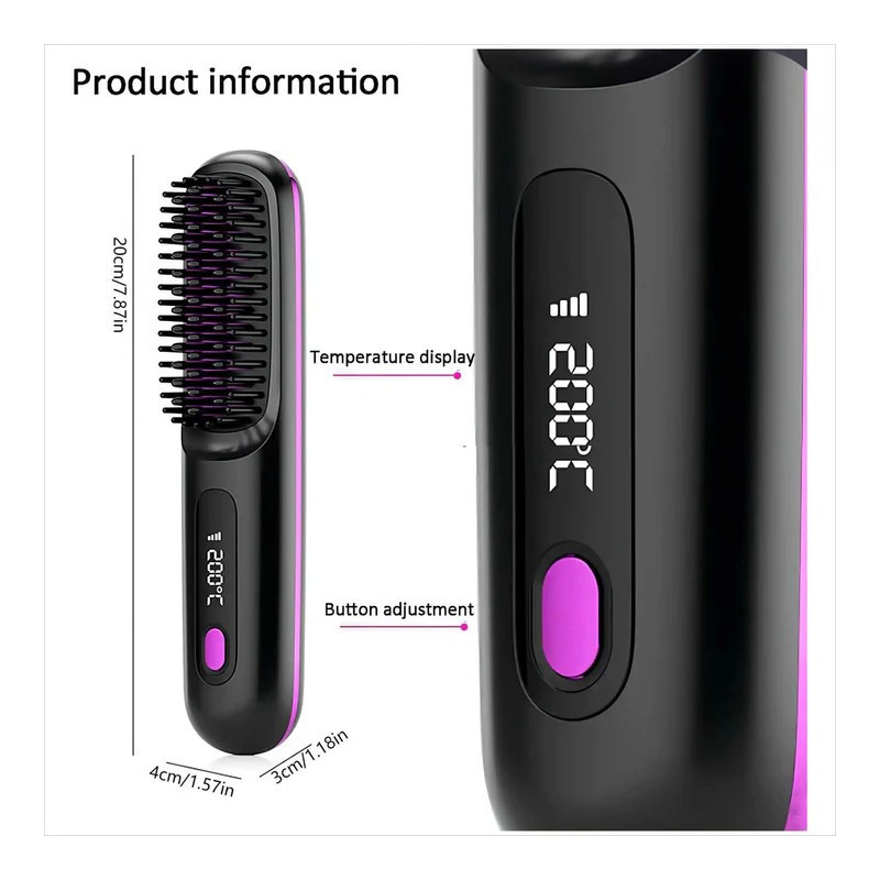 Included: cordless straightening comb, USB charging cable, 2 pcs. hair clips, comb