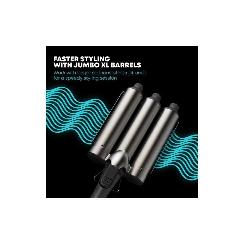 Ceramic waver with XL 38mm triple wave barrels for styling larger, thicker sections of hair