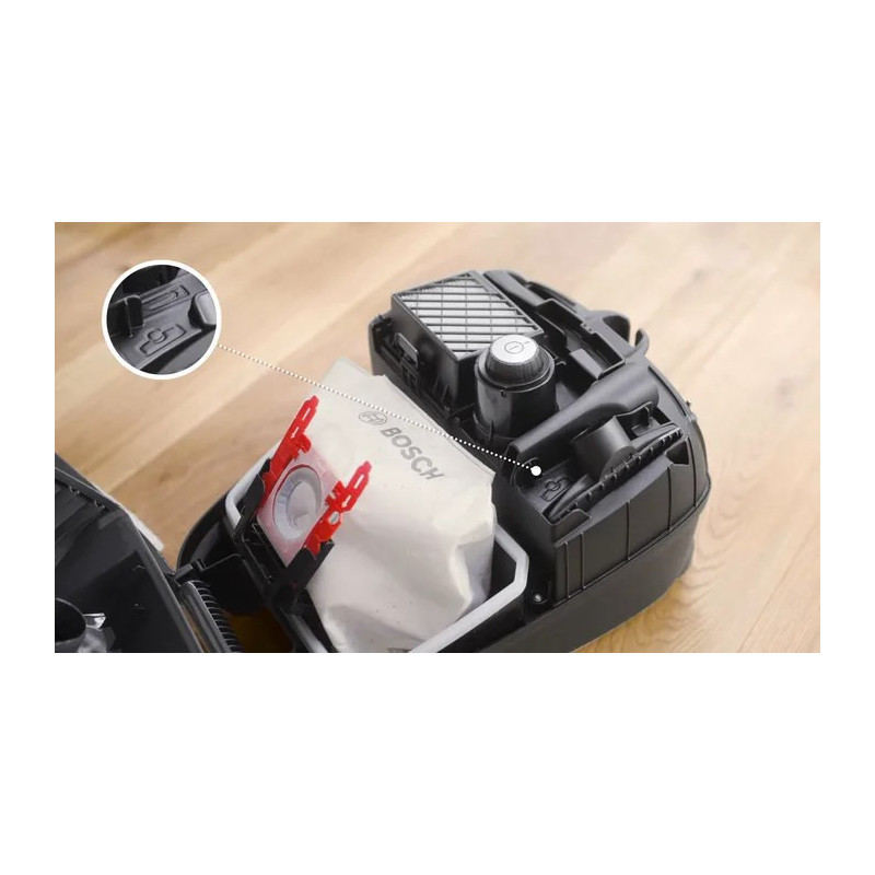 The Bosch Serie 4 BGB41HYG1H is a 600W powerful cylinder vacuum cleaner with a 4L dust capacity and a maximum working radius of 11m. It features variable electronic power control, a telescopic hose and various brushes for different surfaces.