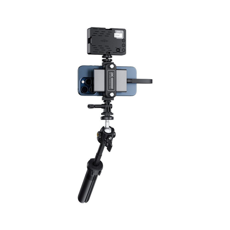The SPC S25 Portable SSD Holder and Smartphone Clamp securely holds your smartphone and external SSD for recording. It features adjustable mounting options, including a cold shoe, and supports a variety of angles for optimal shooting.
