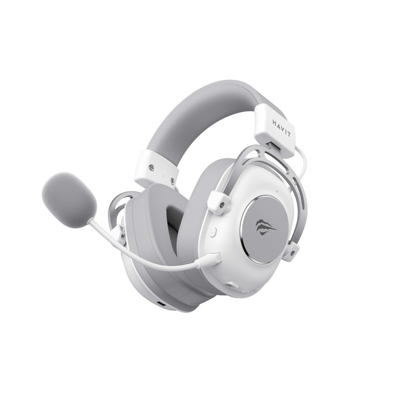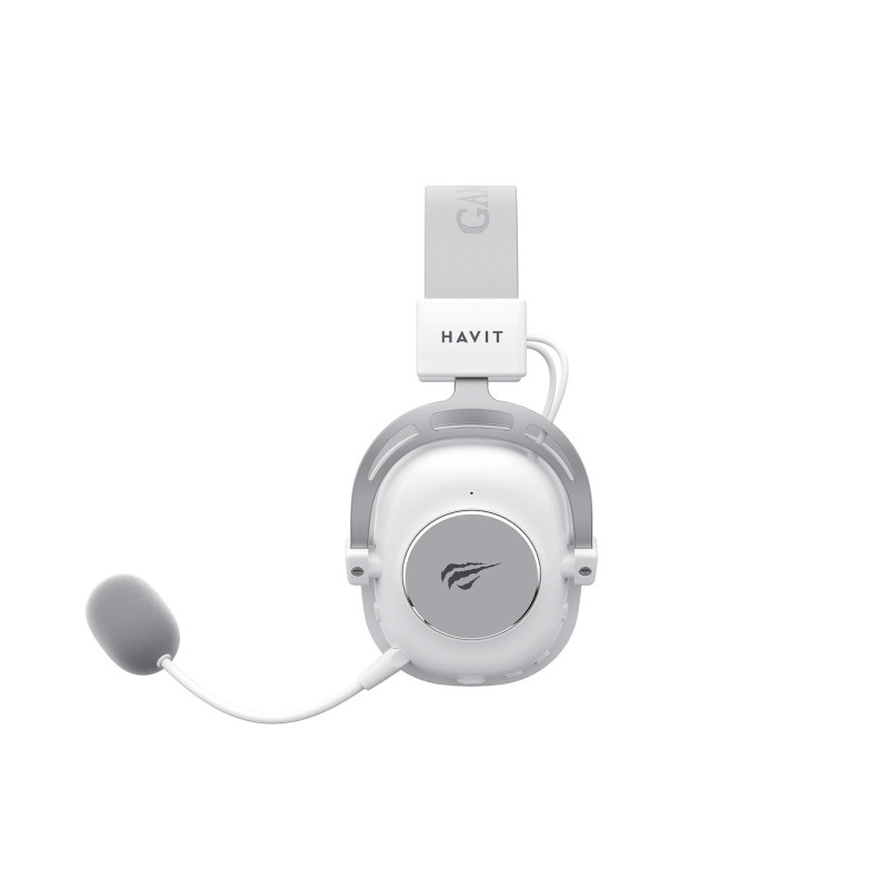 Wireless gaming headset with 2.4 GHz frequency band and 10 meters wireless range. It has a built-in 600 mAh lithium battery, boom microphone and transmits audio frequencies from 20 to 20,000 Hz.