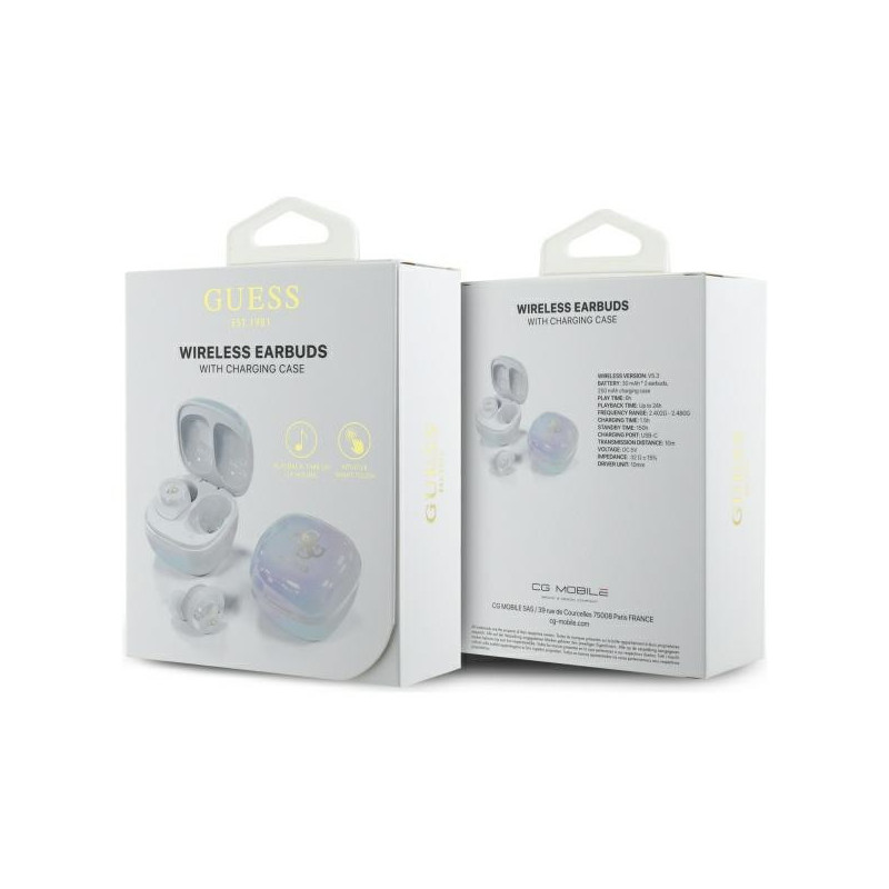 Guess Bluetooth headphones GUTWSJ144ESH TWS + docking station white/white Iridescent 4G Printed Logo