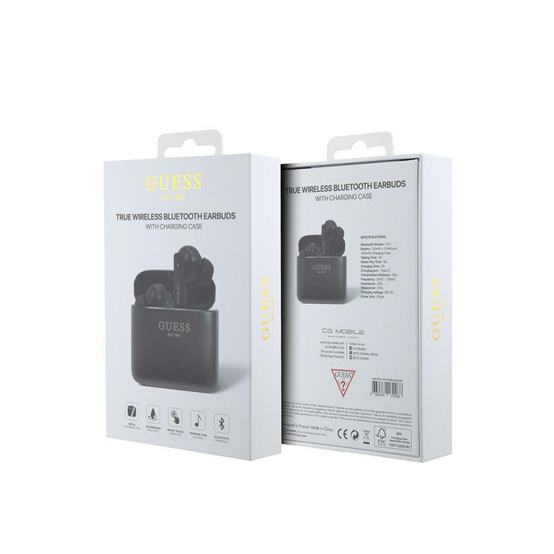 Guess Bluetooth headphones GUTWSSU20ALEGK TWS + docking station black/black Printed Logo