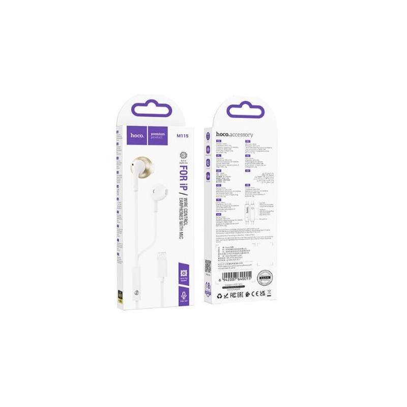 Wired headphones Hoco M115 Sagacious universal earphones with microphone iP White