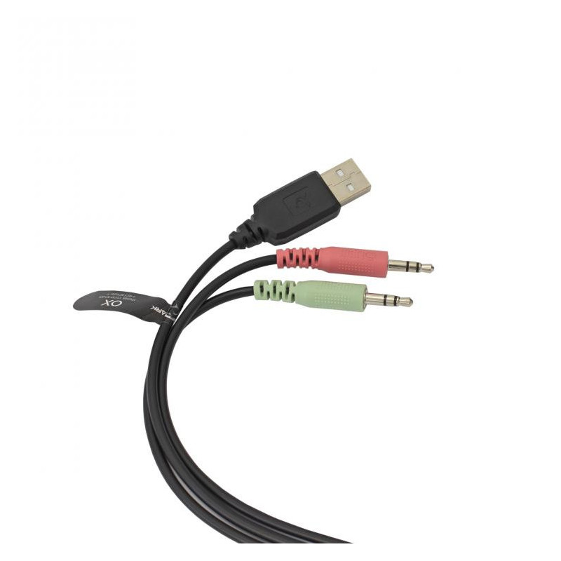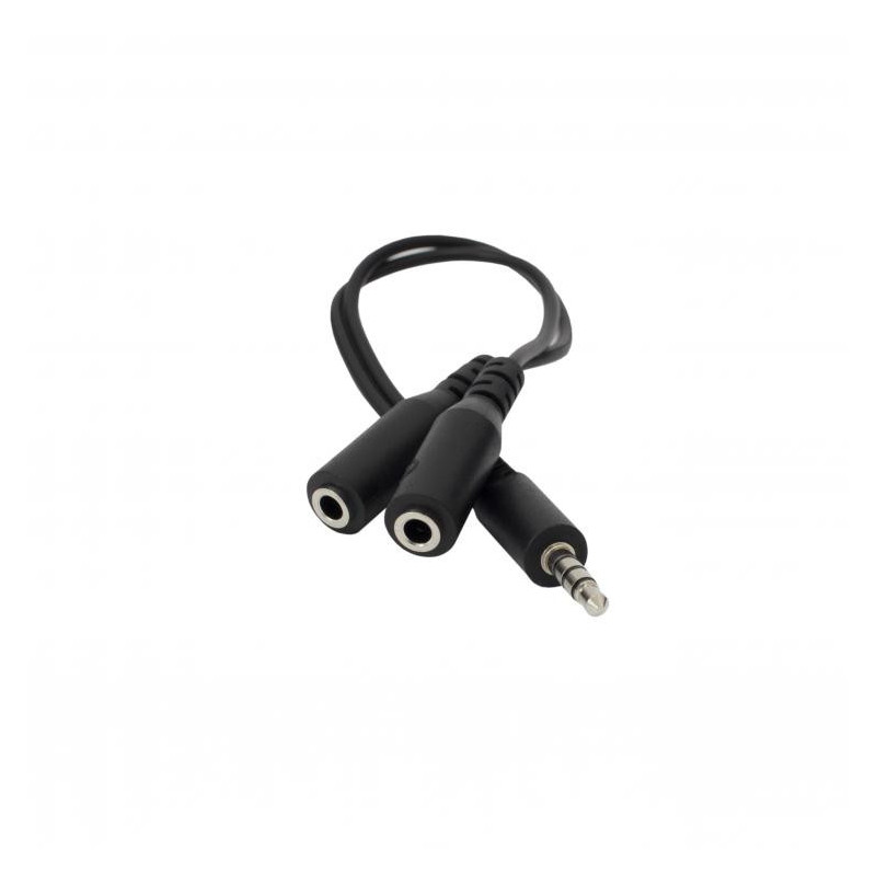 Included audio Y splitter cable 2x 3.5 mm 3-pin Female --> 1x 3.5 mm 4-pin Male
