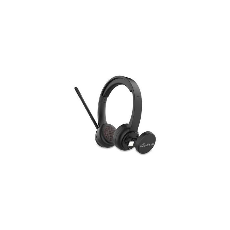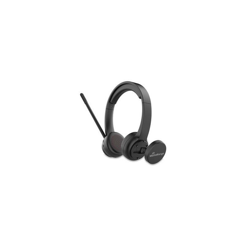 MediaRange Wireless ENC Stereo Headset with rotatable microphone arm, Function Buttons, Rechargeable 400mAh Battery, 2-Device Pairing (BT Ver. 5.2), Black