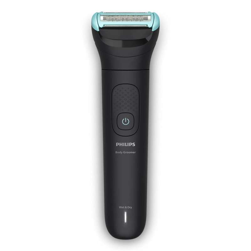 The Philips 5000 Series Body Shaver BG5480/15 is a waterproof and washable body hair trimmer with a minimum hair length limit of 2 mm and a maximum of 5 mm. It features a rechargeable lithium battery that provides 100 minutes of running time and three combs for different hair lengths.