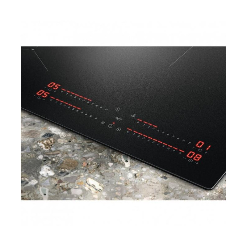 • Kaitlentės tipas: indukcinė • Dizainas - nuožulnus, be rėmelio • Jutiklinė valdymo sistema • Valdymo padėtis: Priekyje dešinėje • Apšviestas valdymas • Kiekvienai zonai skirtos skaitmeninės nuorodos • Indukcinės kaitvietės su galios padidinimo funkcija • Gaminimo indo aptikimas • Kairė priekinė zona: Indukcinė, 2300/3200W/210mm • Kairė galinė zona: Indukcinė, 2300/3200W/210mm • Vidurinė priekinė zona: No, • Vidurinė galinė zona: No, • Dešinė priekinė zona: Indukcinė, 1400/2500W/145mm • Dešinė galinė zona: Indukcinė, 1800/2800W/180mm • Užrakinimo funkcija • Užrakto nuo vaikų funkcija • Garsinis signalas su išjungimo galimybe • „EcoTimer™“ • Laikmačio funkcija • „CleverHeat“ valdymas • Lengvas montavimas dėl įstatomos sistemos • Pagrindinė spalva: Juoda matinė