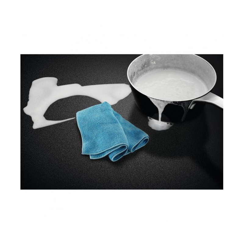 Ilgalaikė elegancija ir mažiau įbrėžimų Dėl specialaus naujo stiklinio paviršiaus kaitlentė ilgiau išlieka it nauja, su mažiau įbrėžimų. Elegantišką, pirštų atspaudams ir dėmėms atsparų juodą „SaphirMatt“ paviršių lengva nuvalyti.