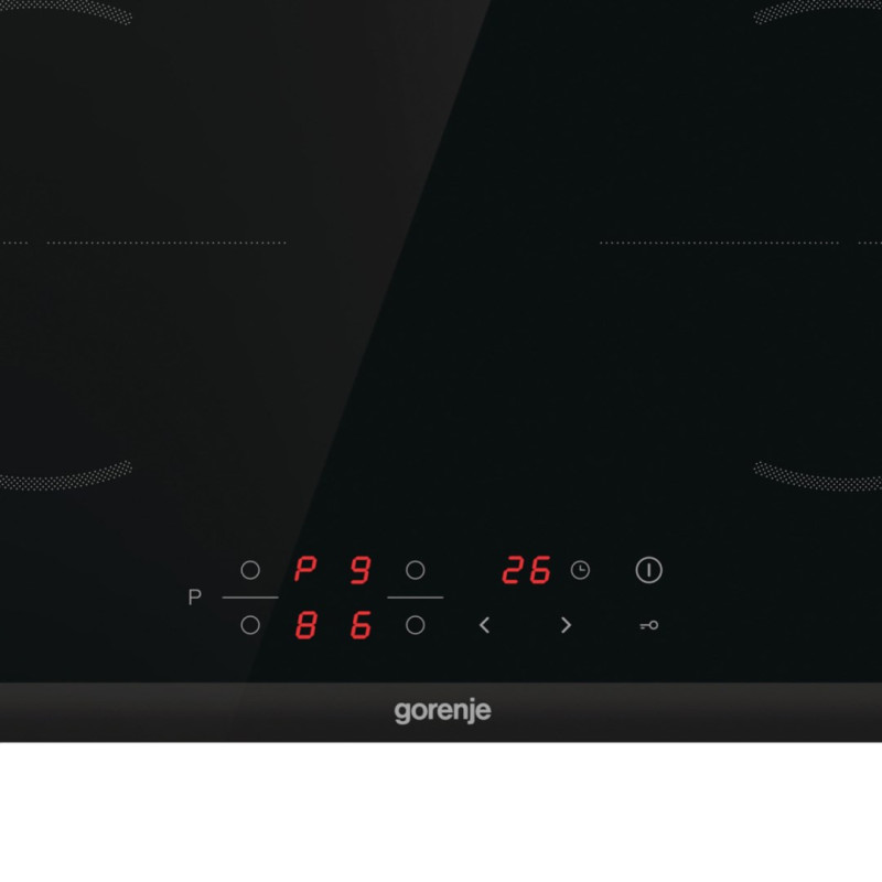 The Gorenje induction cooker GI6401BCE RAL9017 has four electric cooking zones with a total power of 7200 W and a glass-ceramic surface. It features a fast cooking function, child safety lock and a digital timer for convenient use.