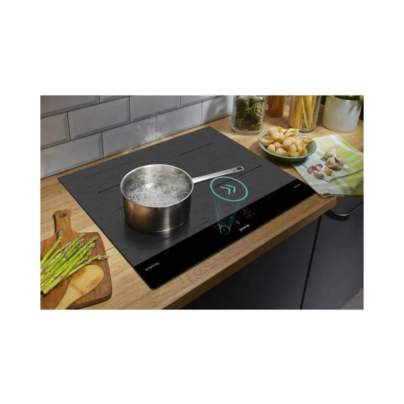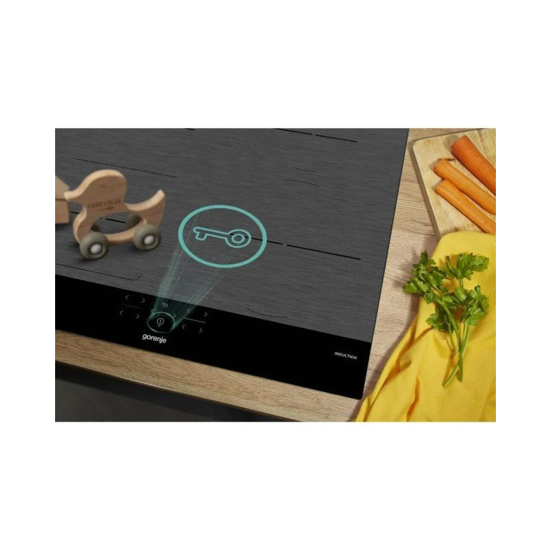 The GORENJE GI6421SYB is a built-in induction hob with four cooking zones, including a flexible cooking zone. It features a glass-ceramic surface, a digital timer and touch-sensitive controls for convenient use.