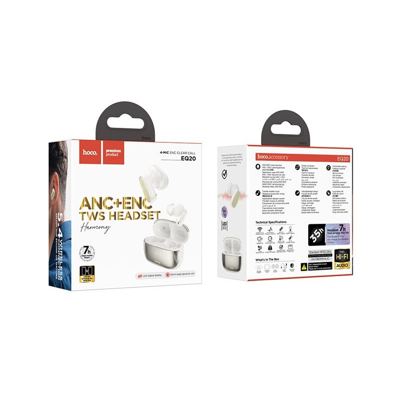 Hoco EQ20 Rhyme Headset Wireless In-Ear Calls/Music Bluetooth White