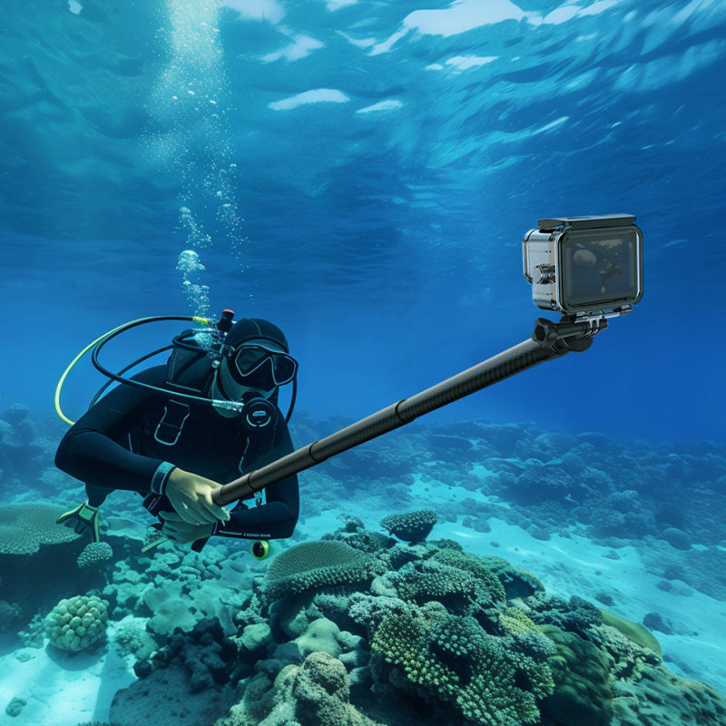 The VL02 Carbon Fiber Selfie Stick extends up to 2.7 meters and supports devices weighing up to 800 grams. It features a lightweight design, adjustable height, and is suitable for smartphones and cameras.