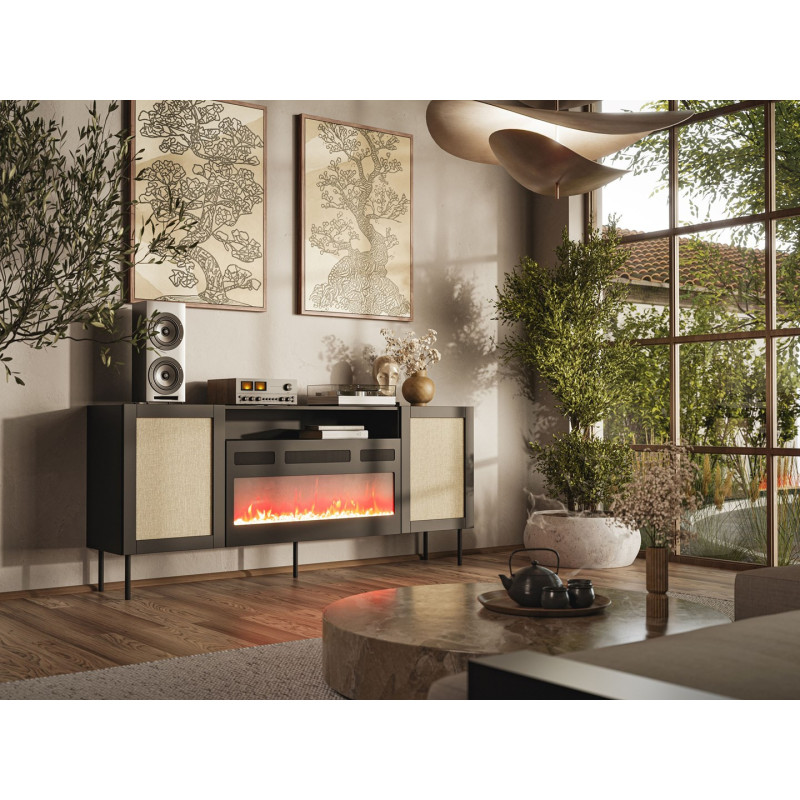 JUTA EF chest of drawers + electric fireplace 202x39.5x85 black + linol calabria