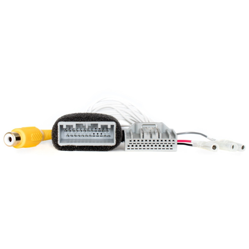 This product connects inline to the back of the original head unit, providing 6V camera power outputs and an RCA video input. Once installed, aftermarket camera images will automatically display on the screen when reversing, and Active Parking Guidance will be displayed on top of the rear view camera image (PAS must be activated in the service menu).