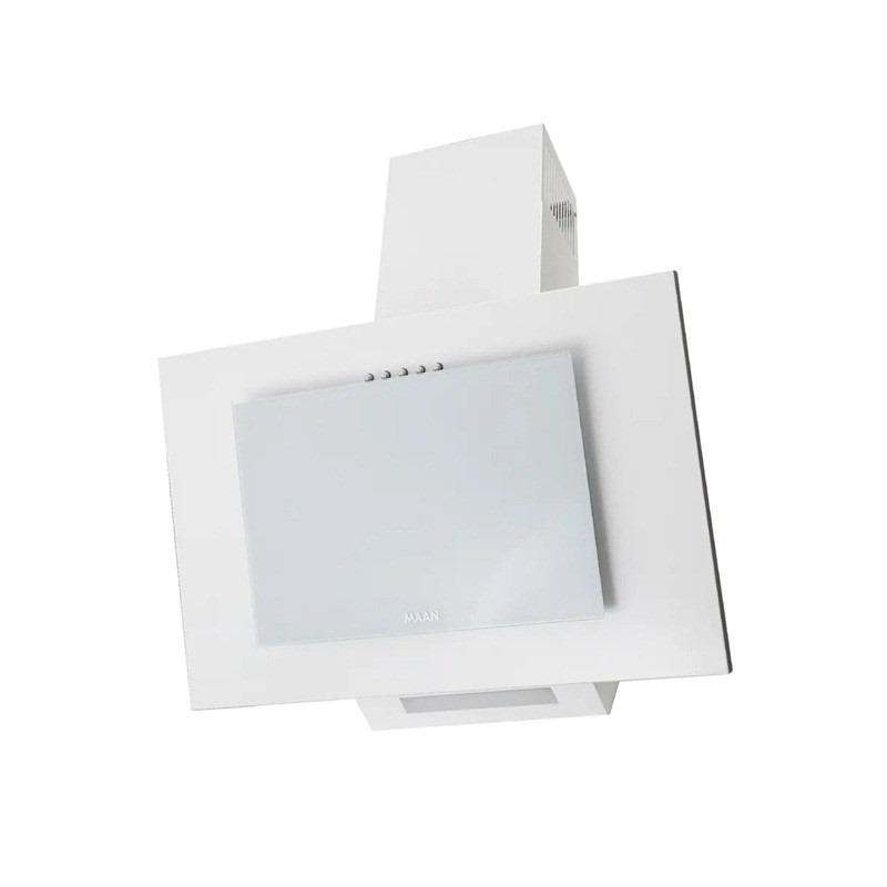 The MAAN Vertical PG 60 kitchen hood has a maximum extraction capacity of 320 m³/h and operates at a noise level of 63 dB. It has a white steel housing, three speed settings and uses two 3W LED bulbs for lighting.