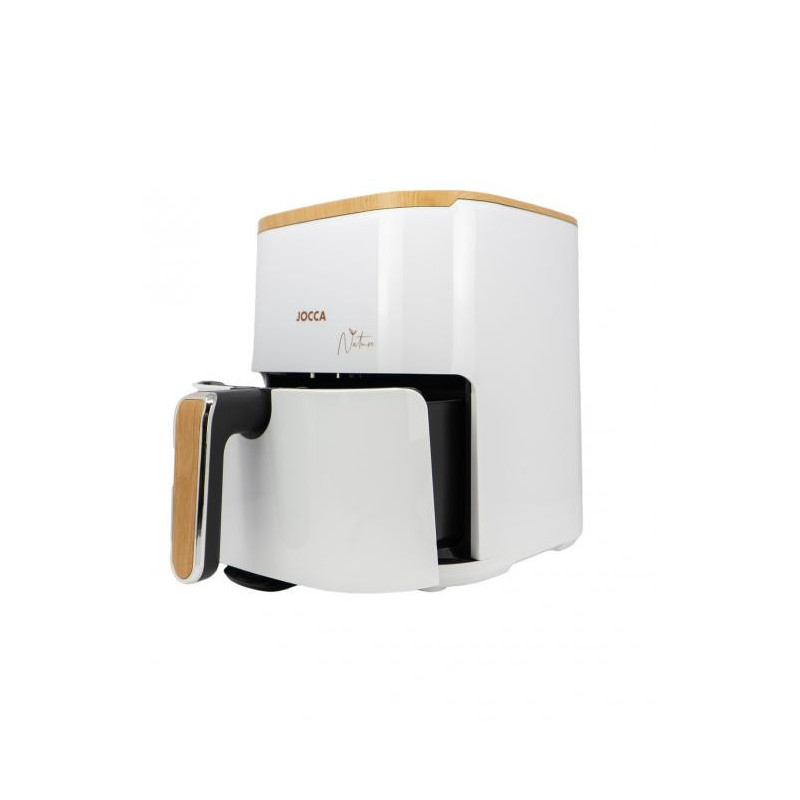 Digital air fryer "Jocca 5L", "Nature Line" - a great choice for healthier cooking without fat. Elegant white design with wood inserts will give your kitchen a modern and natural look.