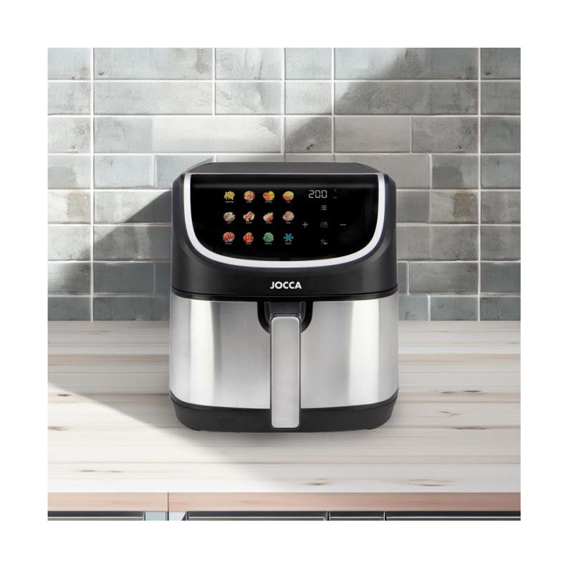 The Jocca air fryer uses hot air circulation technology to cook food evenly, crispy on the outside and juicy on the inside, without the use of oil. Thanks to this technology, you can enjoy healthier meals with fewer calories, without losing the taste and texture of your favorite dishes.