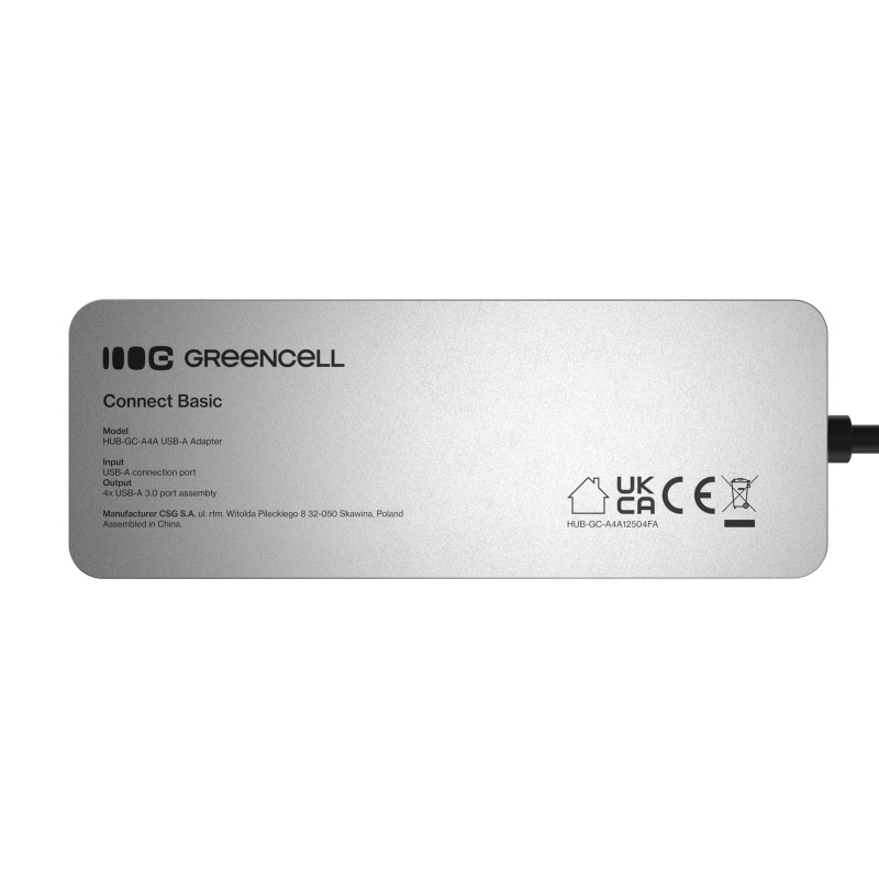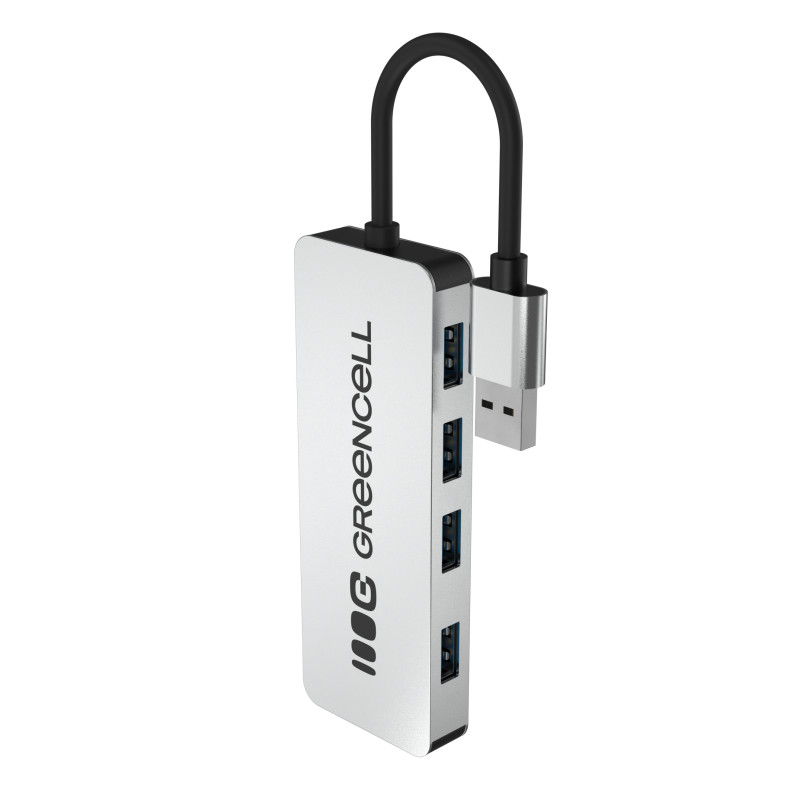 Adapter Basic HUB Greencell USB-A 4in1 (4×USB 3.0) – fast transfer up to 5 Gb/s, aluminum case