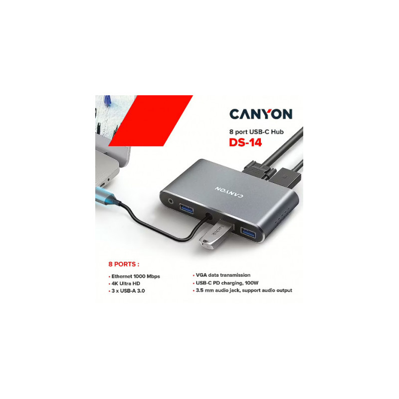 Canyon DS-14 8in1 4k USB-C Dark Grey