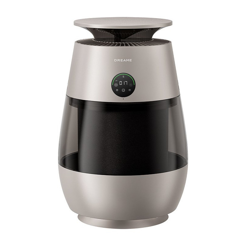 The Dreame AP10 Gold air purifier features a 360-degree design and a clean air delivery rate (CADR) of 430 m³/h for particles and 200 m³/h for formaldehyde. It features an odor sensor, air quality sensors, and Wi-Fi connectivity for remote control.
