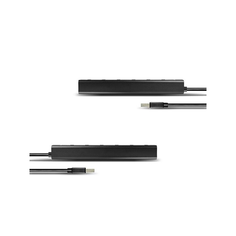 A compact hub with a durable aluminum case connects up to seven USB devices to your PC simultaneously.