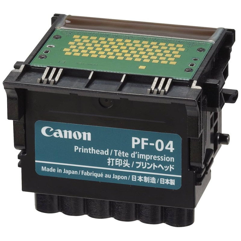 The Canon PF-04 printhead is designed for printers, scanners and multifunction devices. Its dimensions are 102 x 82 x 100 mm and the color is black.