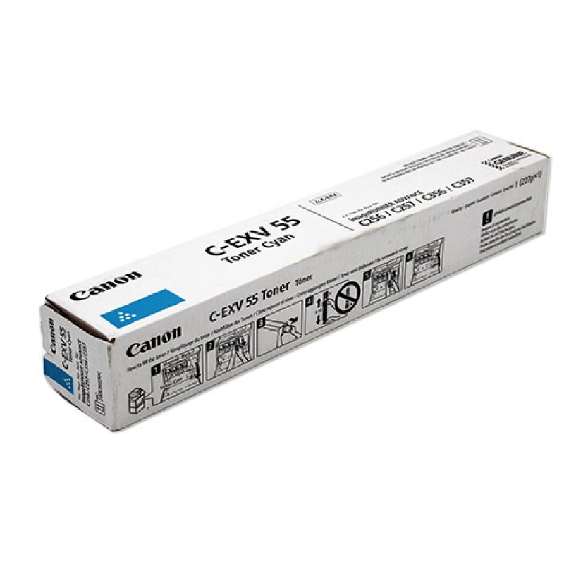 Canon toner C-EXV CEXV 55 Cyan has a yield of 9,750-23,700 pages. This is an original toner unit with dimensions of 425 x 75 x 70 mm.
