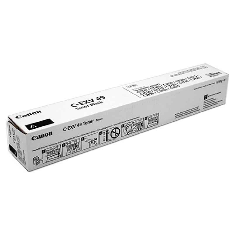 The Canon C-EXV 49 black toner cartridge can print approximately 24,000 pages. This is a genuine toner unit for use with compatible Canon printers.
