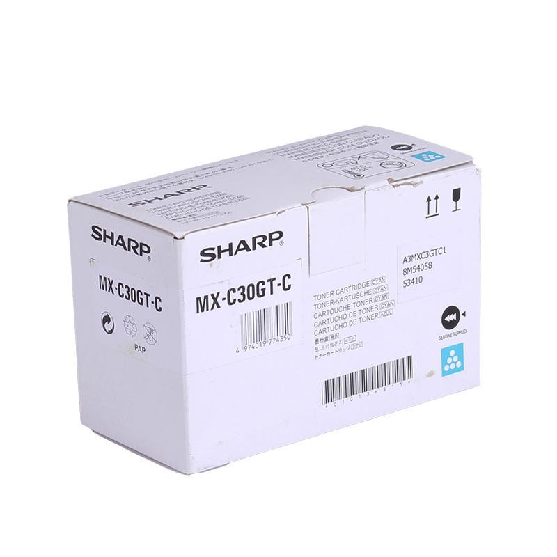 Cyan toner cartridge for use in Sharp printers. Its yield is 5,500-8,800 pages.