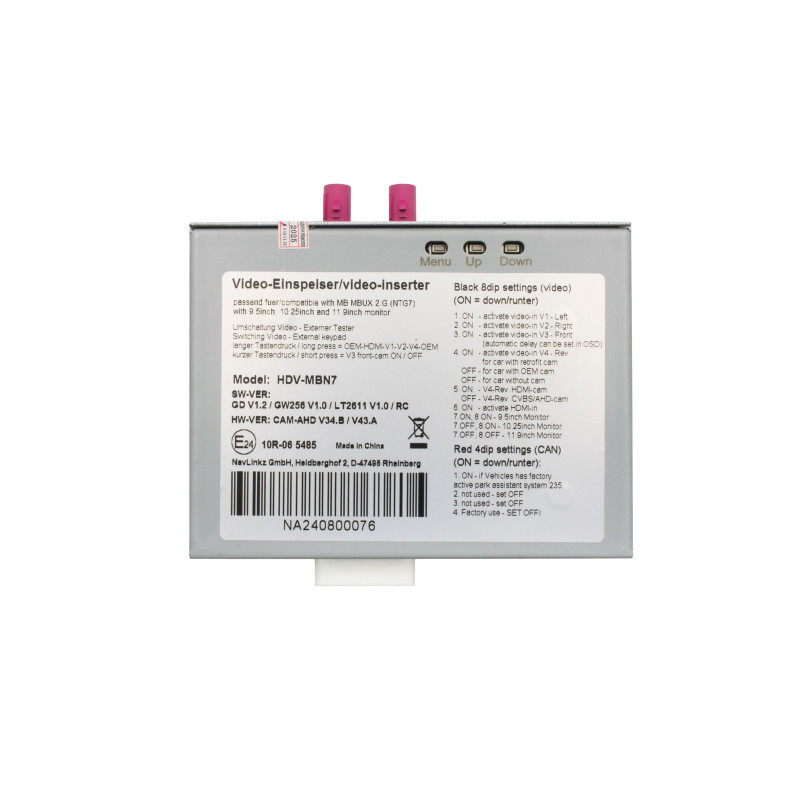 Mercedes NTG 7 - MBUX 2 Video Interface. Monitor 9.5 inch, 10.25 inch, 11.9 inchwith navigation. To connectcamerasfront and rear and two side cameras