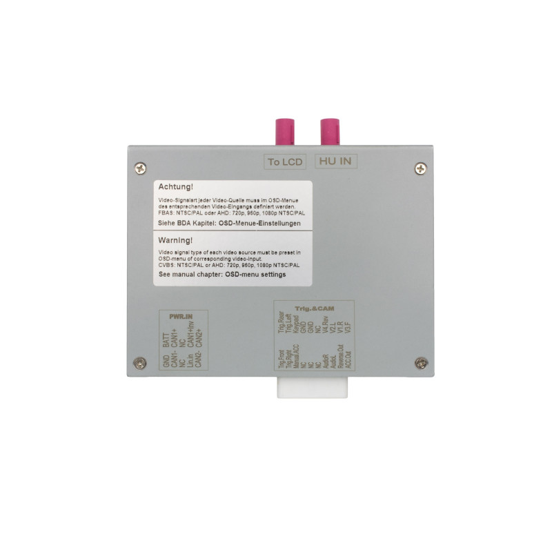 CAN bus compatibility:In some vehicles, the CAN bus compatibility of the interface may be limited, either as a whole or for individual functions. This may be noticeable both during installation and later. The interface with all video inputs can be operated using analog switching signals without the need for connection to the vehicle's CAN bus. Individual additional functions are omitted; see chapter 2.4.2 "Analog Connection without CAN Bus."