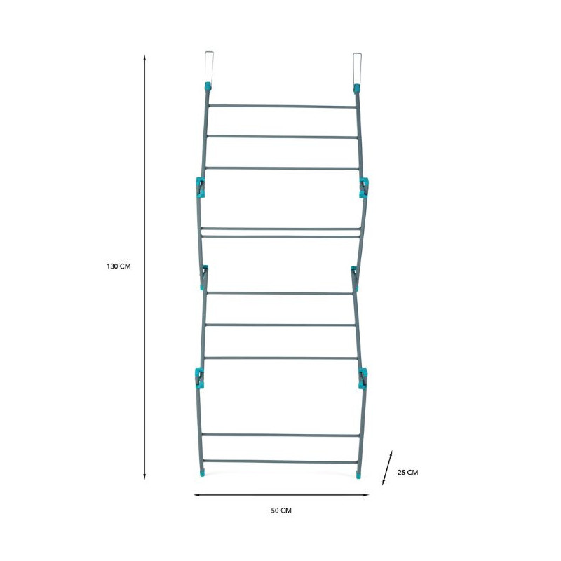 Perfect for first-time homeowners and families alike, it features 10 drying bars and finished in a sleek grey finish with vibrant turquoise highlights.