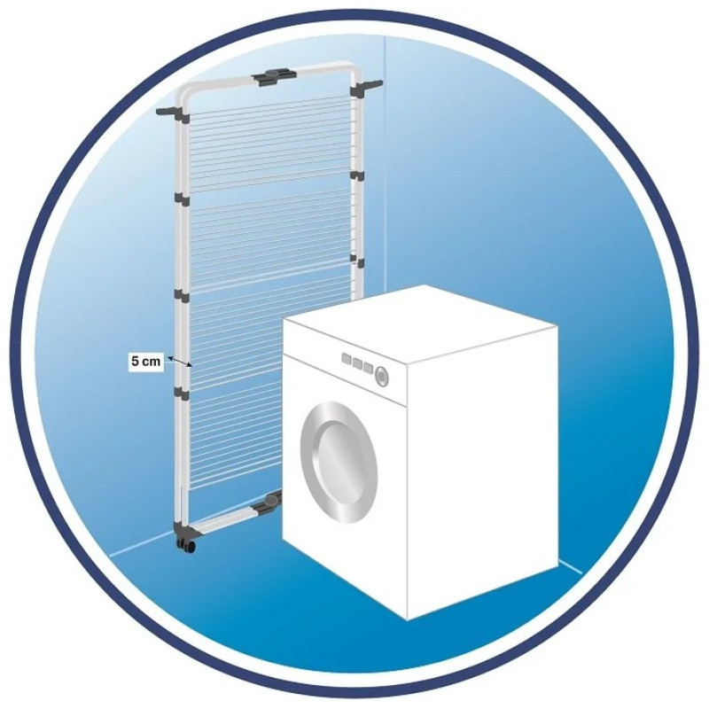 The Vileda Mixer 4 is a compact and efficient upright dryer, perfect for small to medium-sized families. Its steel construction and foldable design with wheels ensure easy portability and convenience in use.