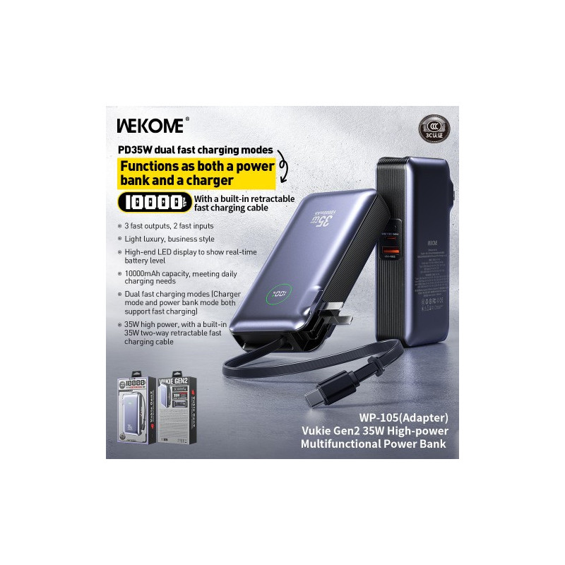 Išorinė baterija WK Design "WP-105" pilkas 10000mAh (35W)
