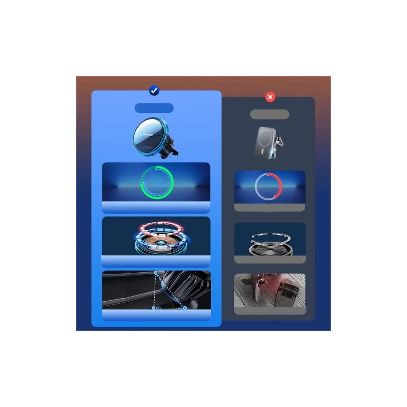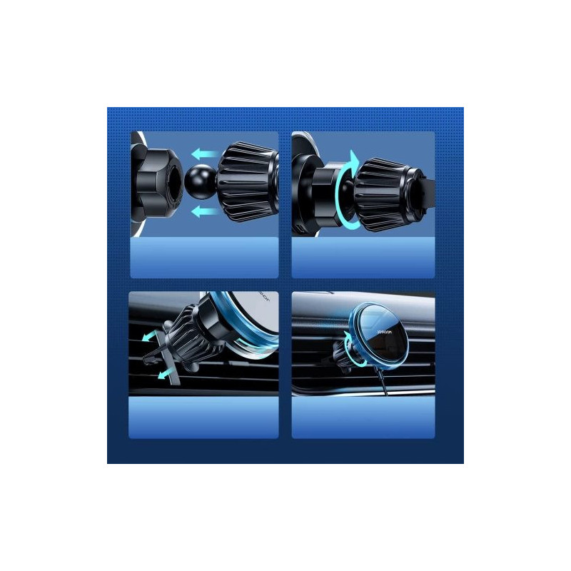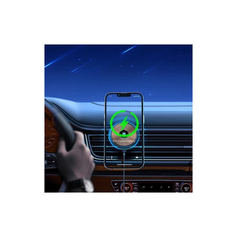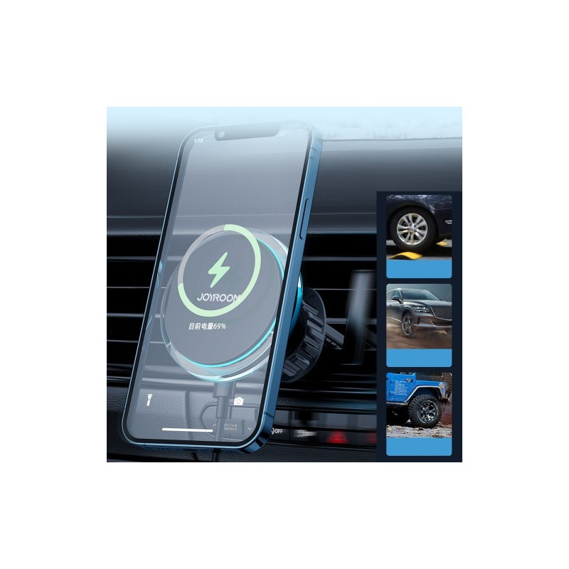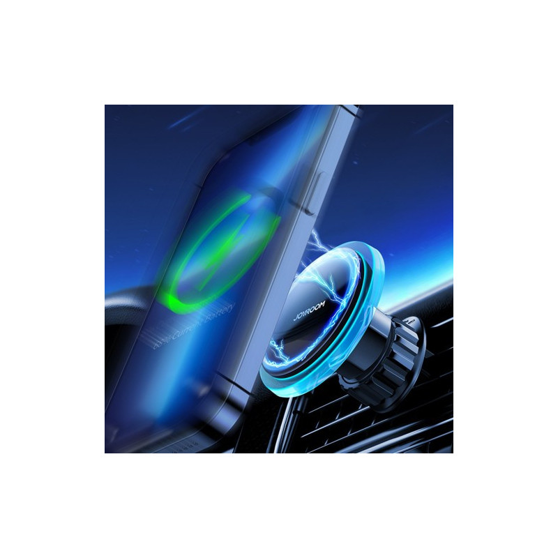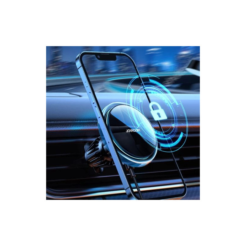 An elegant car phone holder with an inductive charger compatible with MagSafe technology - Joyroom knows how to combine design with functionality. The Joyroom JR-ZS291 holder with wireless charging option is equipped with a transparent ring that illuminates blue when you start the car engine. It will certainly fit stylistically into the interiors of modern cars. Inductive charging will charge your phone quickly and safely. The holder has built-in neodymium magnets and special protections that will prevent the devices from overheating. Joyroom JR-ZS291 is also compatible with MagSafe technology, which means you can also charge iPhone 12, 13, 14, 15 series phones with it.