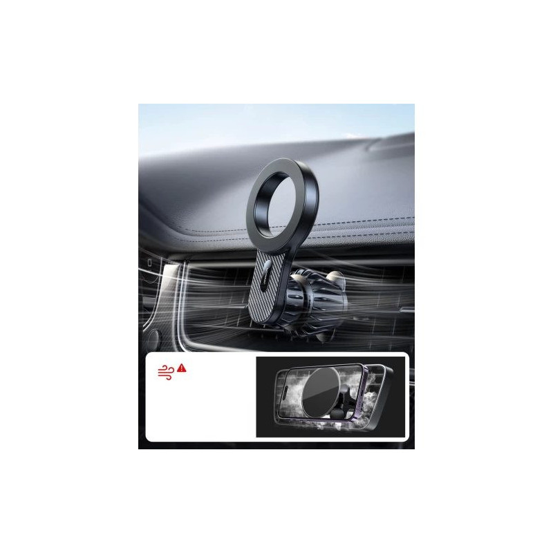 The iPhone car holder with MagSafe from Joyroom has built-in neodymium magnets that ensure a very stable attachment of the smartphone to the holder. The holder is intended for installation on classic air vents. The swivel arm provides complete installation freedom, so you will avoid covering selected elements of the dashboard.